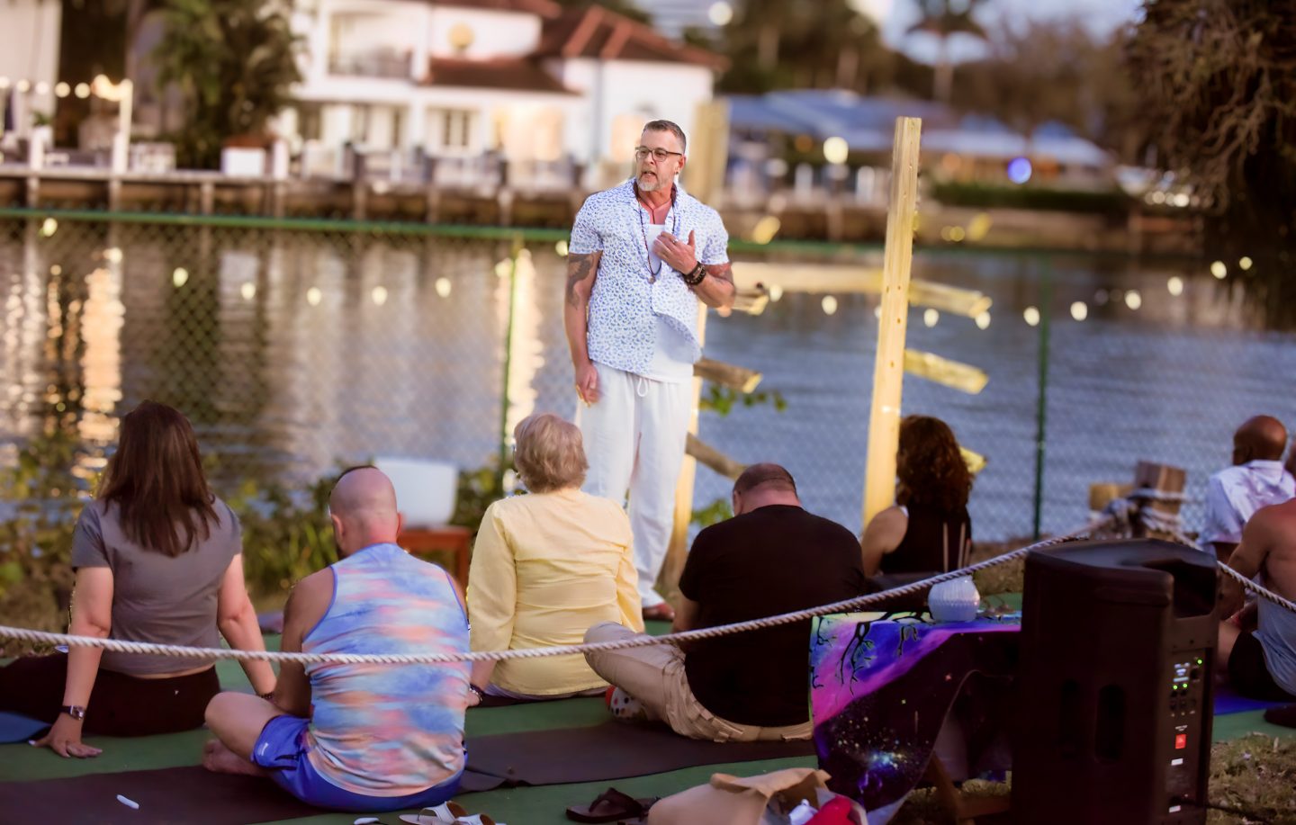 As golden hour settled over the water, a community of artists, healers, practitioners, and newcomers moved through a curated sequence of experiences designed around breath, movement, sound, release, and connection.
